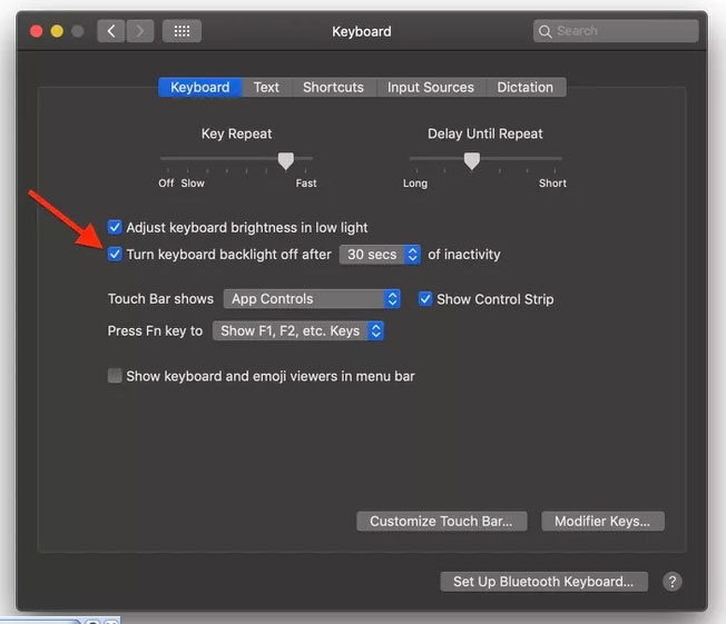 يمكنك ضبط الإضاءة الخلفية للوحة المفاتيح لإيقاف التشغيل بعد فترة من عدم النشاط بحيث تكون في وضع التشغيل عندما تحتاج إليها وخارجه عندما تبتعد.