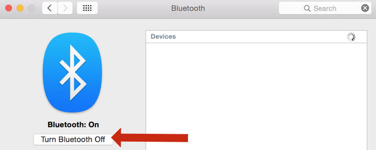 ما عليك سوى النقر على رمز البلوتوث في شريط القائمة واختيار إيقاف البلوتوث Turn Bluetooth Off.