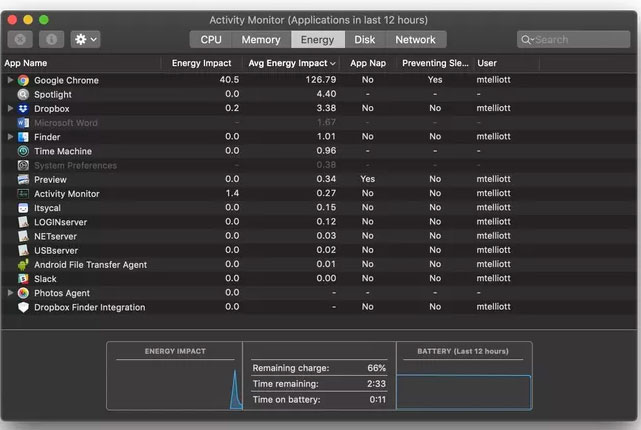 لمعرفة مقدار الطاقة التي تستخدمها كل التطبيقات المفتوحة ، افتح Activity Monitor وانقر فوق علامة التبويب Energy.