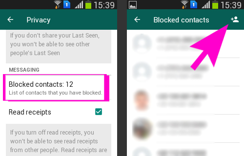 في قائمة Privacy ابحث عن الأمر Blocked contacts ثم انقر على زر “إضافة جديد” Add New