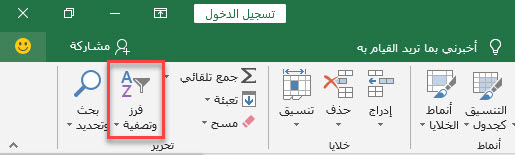 تقع القائمة المنسدلة “فرز وتصفية” (Sort & Filter) في أقصى يسار علامة التبويب “الشريط الرئيسي”(Home).