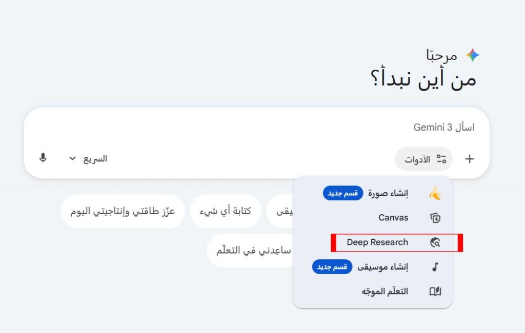 – اختر البحث المعمق (Deep Research)، وأرسل طلبك عند إنشاء الرسالة.