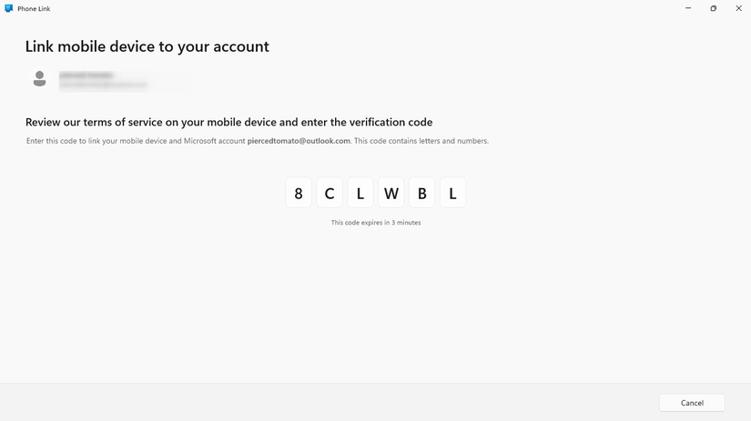 بمجرد أن تمسح رمز QR بنجاح، سيعطيك Phone Link كلمة مرور لمرة واحدة تحتاج إلى كتابتها في هاتفك الأندرويد (سيعرض تطبيق Phone Link على هاتفك نافذة إدخال).
